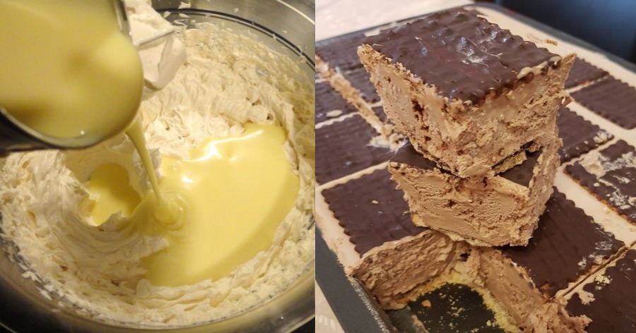 Βάζουμε μέσα στον κάδο το ζαχαρούχο γάλα και το τυρί κρέμα. Τα χτυπάμε με το σύρμα μέχρι να ομογενοποιηθεί το μείγμα.