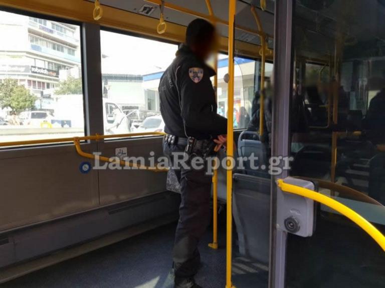 Στο σημείο βρέθηκαν δύο πληρώματα της Ομάδας ΔΙΑΣ και περιπολικά της Άμεσης Δράσης Λαμίας, με επικεφαλής τον διοικητή της, Σωτήρη Σκαρμούτσο. Με μέτρα αυτοπροστασίας, κατέβασαν από το Αστικό ένα ζευγάρι που ενεπλάκη στο επεισόδιο και ήλεγξαν αν έχουν κάτι επάνω τους καθώς και τα στοιχεία τους με αρνητικά αποτελέσματα. Μαζί με το ζευγάρι κατέβηκαν προσωρινά και οι υπόλοιποι επιβάτες που είχαν προορισμό Αμφιθέα και Γενικό Νοσοκομείο.