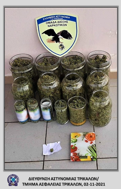 Ειδικότερα, μετά από κατάλληλη αξιοποίηση στοιχείων για διακίνηση ποσοτήτων κάνναβης από το δράστη στην πόλη των Τρικάλων, διενεργήθηκε νομότυπη έρευνα στην οικία του, κατά την οποία βρέθηκαν με τη συνδρομή του αστυνομικού σκύλου ανίχνευσης ναρκωτικών ουσιών “ FLEX ” και κατασχέθηκαν δεκατέσσερα γυάλινα δοχεία και μία χάρτινη συσκευασία με ποσότητες ακατέργαστης κάνναβης, συνολικού βάρους -1.933,5- γραμμαρίων και μια ηλεκτρονική ζυγαριά