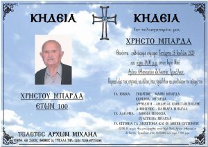 Έφυγε από τη ζωή σε ηλικία 100 ετών ο Χρήστος Μπάρδας.