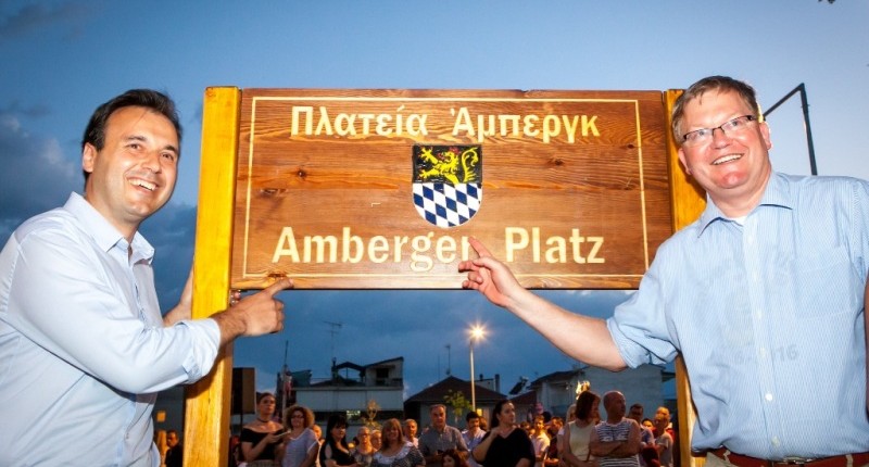 Το απόγευμα της Παρασκευής 24 Ιουνίου 2016, στα Τρίκαλα έγινε ένα ακόμη βήμα σε αυτή την κατεύθυνση: οι Δήμαρχοι των αδελφοποιημένων Δήμων Τρικκαίων και Amberg κ. Δημήτρης Παπαστεργίου και Μάικλ Τσέρνι, εγκαινίασαν την παιδική χαρά που δώρισε η γερμανική πόλη. Και αμέσως μετά, αποκάλυψαν την πλακέτα ονοματοδοσίας της πλατείας, όπου βρίσκεται η παιδική χαρά, ως πλατεία Amberg.