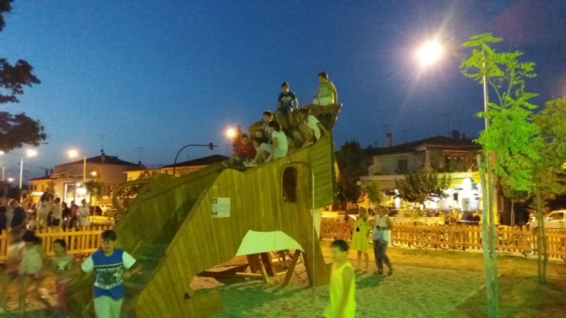 Στην κατάμεστη από τρικαλινούς/ες και, κυρίως, από παιδιά, πλατεία, υπήρξε και πρόγραμμα από σχολές χορού των Τρικάλων με σύγχρονους χορούς. Το γνωστό, δε, συρτάκι και οι ήχοι του μπουζουκιού-του οργάνου με το οποίο μεγαλούργησαν ο Τσιτσάνης και ο Καλδάρας -, ένωσε τις δύο πλευρές, στα βήματα της συναδέλφωσης.