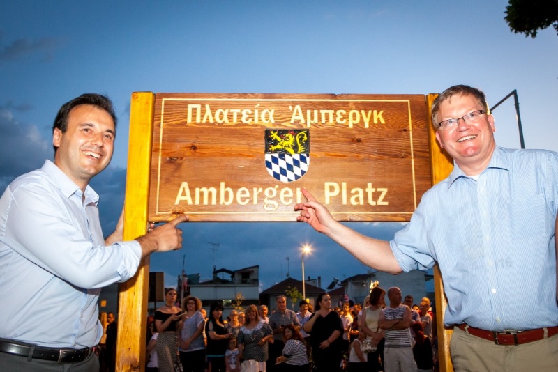Το απόγευμα της Παρασκευής 24 Ιουνίου 2016, στα Τρίκαλα έγινε ένα ακόμη βήμα σε αυτή την κατεύθυνση: οι Δήμαρχοι των αδελφοποιημένων Δήμων Τρικκαίων και Amberg κ. Δημήτρης Παπαστεργίου και Μάικλ Τσέρνι, εγκαινίασαν την παιδική χαρά που δώρισε η γερμανική πόλη. Και αμέσως μετά, αποκάλυψαν την πλακέτα ονοματοδοσίας της πλατείας, όπου βρίσκεται η παιδική χαρά, ως πλατεία Amberg.