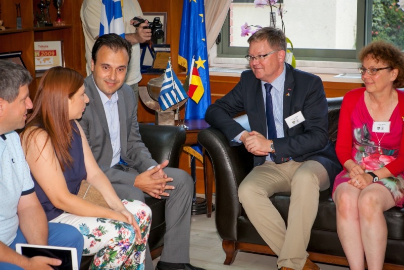 Η 13μελής γερμανική αντιπροσωπεία νωρίτερα αντάλλαξε δώρα με τον Δήμαρχο Τρικκαίων, στο Δημαρχείο. Το Σάββατο θα διεξαχθούν οι κύριες συνομιλίες για την ενίσχυση της αδελφοποίησης των δύο Δήμων.
