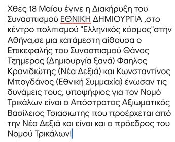 trikaladay.gr / Τοπικά / Εγινε η Διακήρυξη του Συνασπισμού “Εθνική Δημιουργία” – Ανακοινώθηκε και ο πρώτος υποψήφιος βουλευτής στο Ν. Τρικάλων