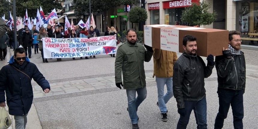 Μια πρωτότυπη και μακάβρια εικόνα αντίκρισαν σήμερα οι Τρικαλινοί στο συλλαλητήριο του ΠΑΜΕ.
