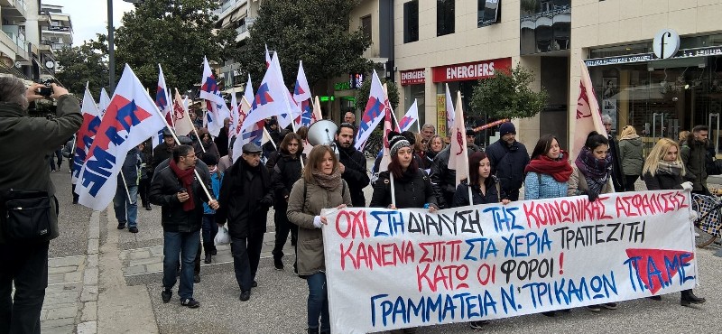 Δυναμικό συλλαλητήριο πραγματοποίησε το ΠΑΜΕ σήμερα ,Σάββατο 23 Γενάρη, στα Τρίκαλα ενάντια στους σχεδιασμούς της κυβέρνησης, ΕΕ και κεφαλαίου για την ισοπέδωση της κοινωνικής ασφάλισης.