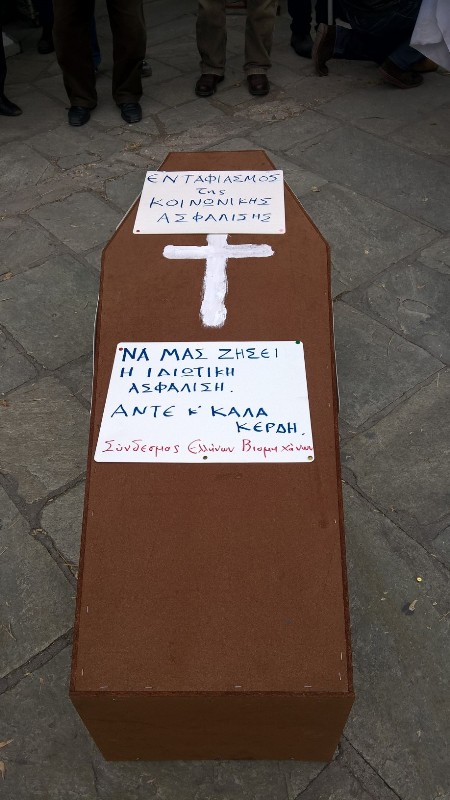 «Να μας ζήσει η ιδιωτική ασφάλιση. Άντε και καλά κέρδη», έγραφε το συλλυπητήριο μήνυμα του Συνδέσμου Ελλήνων Βιομηχάνων (ΣΕΒ).