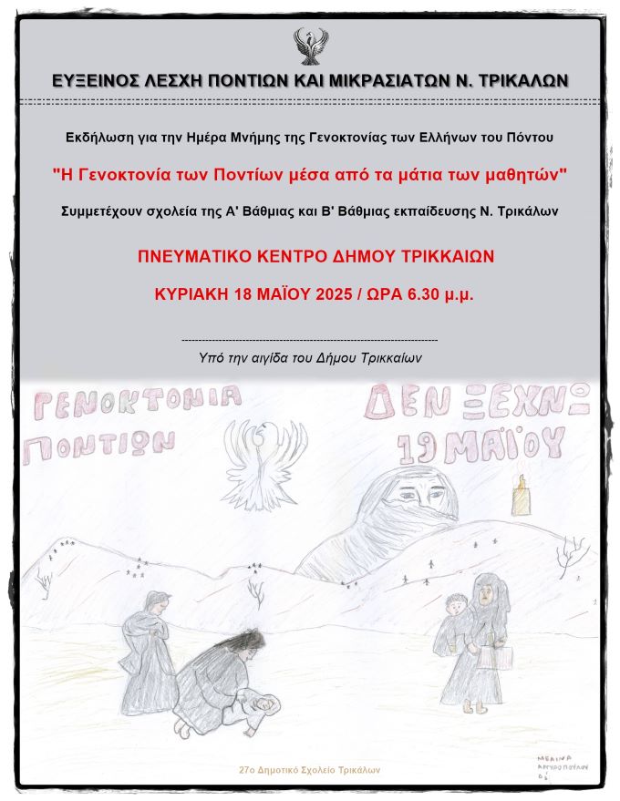 για την Ημέρα Μνήμης της Γενοκτονίας των Ελλήνων του Πόντου, με τίτλο: