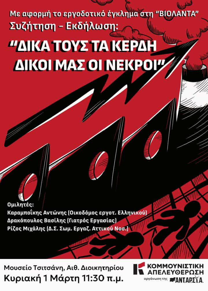 Συζήτηση-εκδήλωση με αφορμή το εργοδοτικό έγκλημα στη ΒΙΟΛΑΝΤΑ