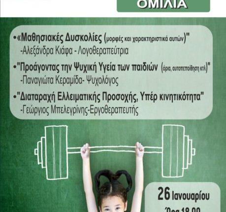 Η είσοδος είναι ελεύθερη και η διάλεξη απευθύνεται σε όλους τους γονείς με ευαισθησία, ανεξαρτήτως σχολείου!