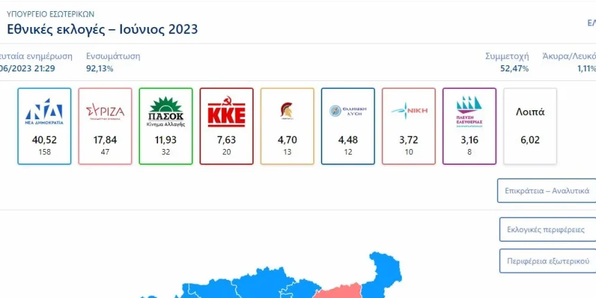 Με ραγδαίο ρυθμό εμφανίζονται τα αποτελέσματα των εκλογών από το υπουργείο Εσωτερικών και την Singular Logic.