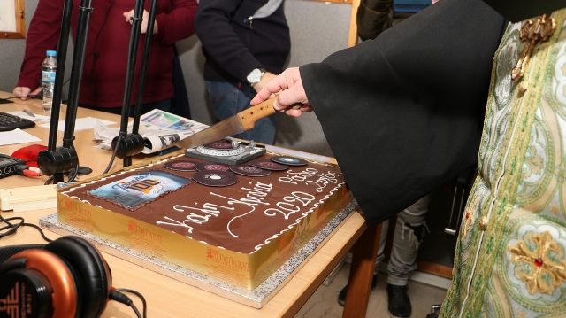 Την πίτα ευλόγησε ο πατήρ Αθανάσιος Τύμπας, ενώ τυχερός αναδείχθηκε ο ηχολήπτης του σταθμού Κώστας Χρυσάνθης που βρήκε το φλουρί το οποίο αντιστοιχούσε σε 100 ευρώ.