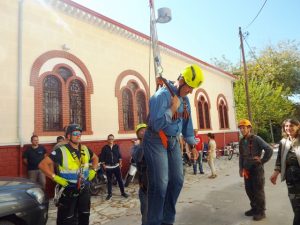 Ακολούθησε πρακτική επίδειξη – άσκηση στον προαύλιο χώρο του Μουσείου Τσιτσάνη, με επικέντρωση στην ορθή χρήση των Μέσων Ατομικής Προστασίας, στη χρήση life lines και στον τρόπο επιλογής κατάλληλων σημείων αγκύρωσης. Επίσης, έγιναν ενημερώσεις για θέματα διάσωσης και γενικότερου υγειονομικού ενδιαφέροντος με εξοπλισμό διάσωσης (rescue kit).