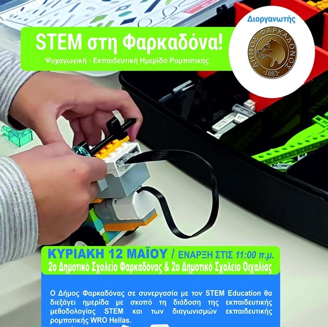 Ο Δήμος Φαρκαδόνας σε συνεργασία με τον μη κερδοσκοπικό Οργανισμό STEM Education πρόκειται να διοργανώσει Εκπαιδευτική – Ψυχαγωγική Ημερίδα Ρομποτικής, με θέμα την ανακύκλωση, για τους μαθητές των Δημοτικών Σχολείων της περιοχής μας. Η συγκεκριμένη δράση τελεί υπό την αιγίδα της Αντιδημαρχίας Καθαριότητας, Ηλεκτροφωτισμού & Πρασίνου, την υποστήριξη του Τμήματος Προγραμματισμού και σε συνεργασία με την Διεύθυνση Πρωτοβάθμιας Εκπαίδευσης Π.Ε. Τρικάλων και το Γραφείο Σχολικών Δραστηριοτήτων της.