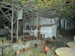 Η έκρηξη που σημειώθηκε στην ταβέρνα “Σκαλάκια” στην πλατεία της Πορταριάς, ήταν μεγάλης ισχύος.