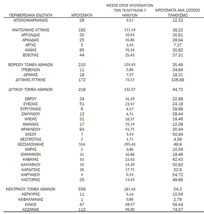 Αναλυτικά η κατανομή των νέων κρουσμάτων στη χώρα μας:
