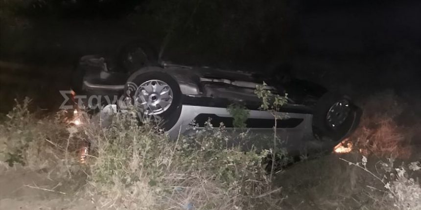 Ι.Χ. Αυτοκίνητο βγήκε εκτός δρόμουκαι ανατράπηκε, λίγο μετά τον Βιολογικό Σταθμό Καλαμπάκας.