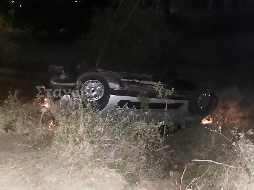 Ι.Χ. Αυτοκίνητο βγήκε εκτός δρόμουκαι ανατράπηκε, λίγο μετά τον Βιολογικό Σταθμό Καλαμπάκας.