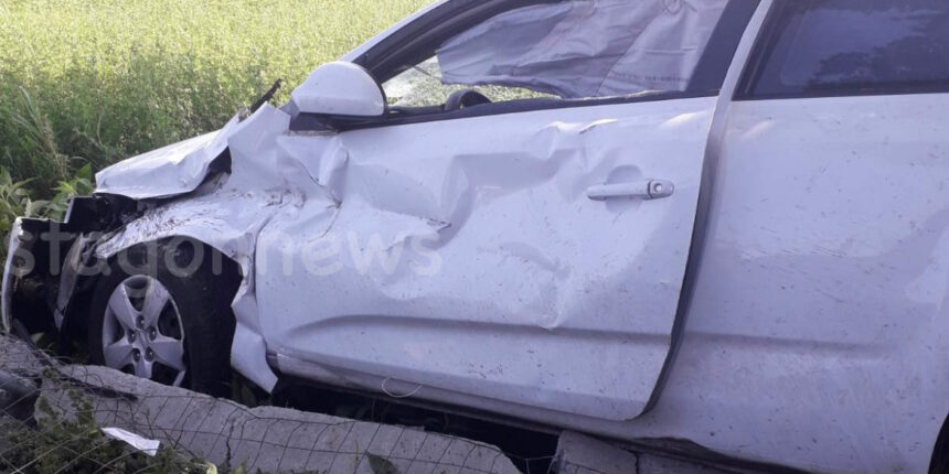 Από το ι.χ. βγήκε τραυματισμένη μια γυναίκα η οποία παρελήφθη από ασθενοφόρο του ΕΚΑΒ.