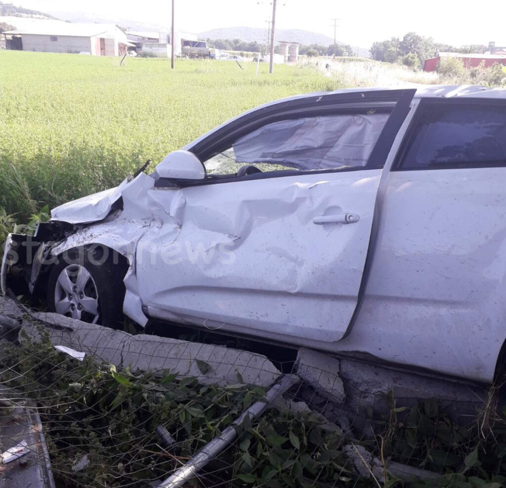 Από το ι.χ. βγήκε τραυματισμένη μια γυναίκα η οποία παρελήφθη από ασθενοφόρο του ΕΚΑΒ.
