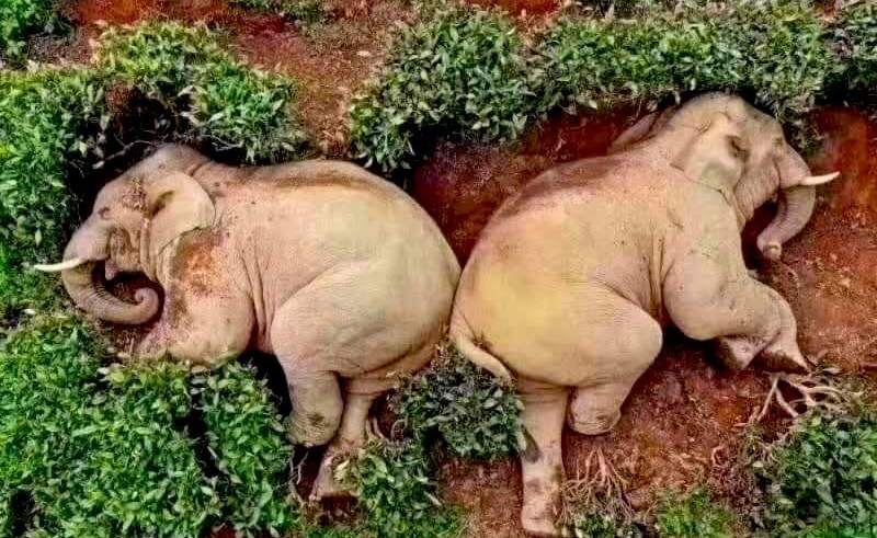 Φωτογραφίες που αναρτήθηκαν στα social media και κάνουν τον γύρο του διαδικτύου δείχνουν 14 ελέφαντες να έχουν πέσει ξεροί στον ύπνο αφότου κατανάλωσαν κρασί που βρήκαν σε ένα χωράφι με καλαμπόκι.