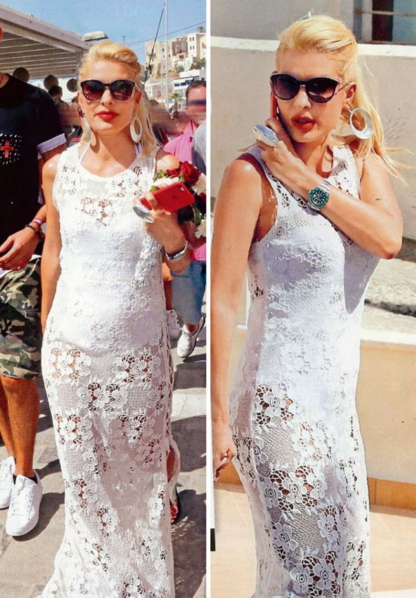 Κόλασε την Άνδρο! Η Ελένη Μενεγάκη άναψε φωτιές και άφησε όλους τους περαστικούς άφωνους, βλέποντάς την να κυκλοφορεί φορώντας το sexy και αποκαλυπτικό ολόσωμο λευκό μαγιό της με ένα διάφανο καφτάνι από πάνω και να πηγαίνει στην τράπεζα του νησιού για να πάρει χρήματα.