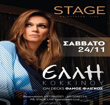 Η γνωστή και καταξιωμένη ερμηνεύτρια Έλλη Κοκκίνου, θα βρεθεί το βράδι του Σαββάτου στη σκηνή του «Stage Live Mainstream», σ’ ένα μοναδικό πρόγραμμα διασκέδασης και ξεφαντώματος.