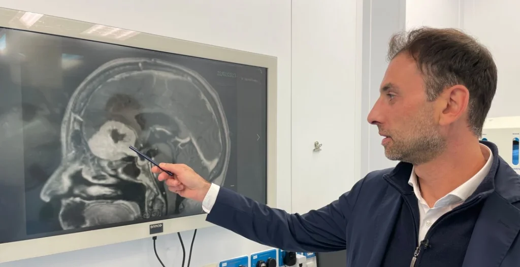 «Πριν χρειαζόταν να κάνουμε μια κρανιοτομή για να έχουμε πλήρη πρόσβαση. Αυτό απαιτεί πολύ χρόνο. Μόνο για να φτάσουμε στον όγκο χρειάζονται τρεις ώρες. Συνολικά αυτή η προσέγγιση χρειάζεται οκτώ με δέκα ώρες», ανέφερε ο Αναστάσιος Γιαμουριάδης.