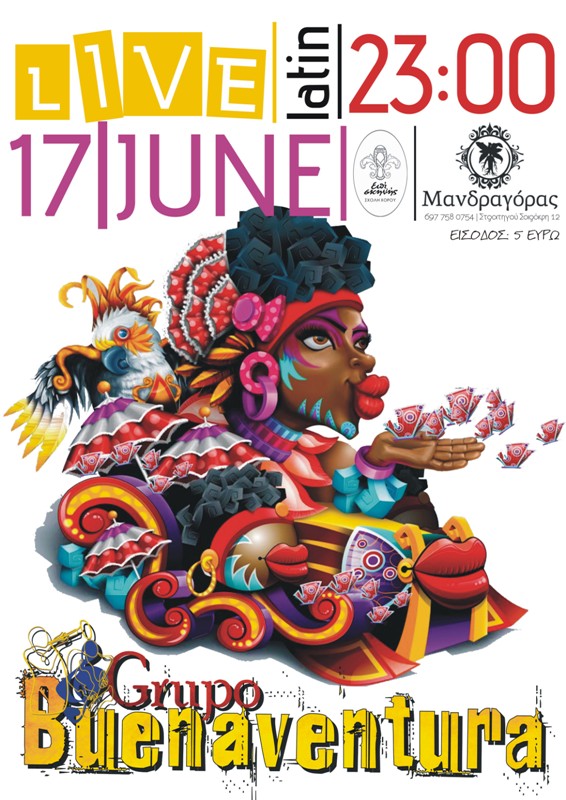 Ο «Μανδραγόρας», με την υποστήριξη της σχολής χορού «Επί Σκηνής», φιλοξενεί και παρουσιάζει, για τρίτη φορά, το “Grupo Buenaventura” σε ένα άκρως καλοκαιρινό και χορευτικό live που θα ανεβάσει τη θερμοκρασία!
