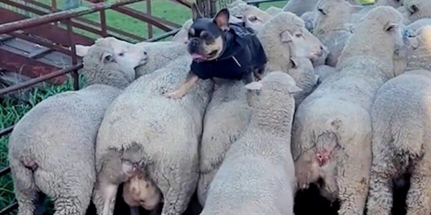 Ένα γαλλικό μπουλντόγκ προκαλεί χάος σε αυτό το αγρόκτημα. Μπορεί να είναι χαριτωμένο αλλά σίγουρα πιστεύει πως είναι… τσοπανόσκυλο!