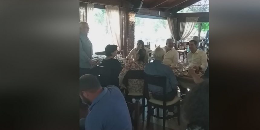 Ο πρόεδρος του ΣΥΡΙΖΑ αργότερα βρέθηκε σε ταβέρνα του χωριού Καππά, ένα από τα οκτώ χωριά του δήμου Μουζακίου στον νομό Καρδίτσας. Εκεί, ο Χρυσόστομος Μητροπάνος -κατάγεται από την Καππά, χωριό καταγωγής και του ξαδέρφου του, αείμνηστου Δημήτρη Μητροπάνου– ερμηνευτής παραδοσιακών τραγουδιών, αφιέρωσε ένα παραδοσιακό τραγούδι στον Αλέξη Τσίπρα. Επίσης, ο ίδιος δώρισε στον Αλέξη Τσίπρα πέντε cd του, με δημοτικά τραγούδια. Μαζί με τον πρόεδρο του ΣΥΡΙΖΑ παραβρέθηκαν οι Σπύρος Λάππας βουλευτής Καρδίτσας, Χρυσούλα Κατσαβρία Σιωροπούλου πρώην βουλευτής Καρδίτσας, Σάκης Παπαδόπουλος βουλευτής Τρικάλων, Παναγιώτα Δριτσέλη και Xρήστος Σιμορέλης -πρώην βουλευτές Τρικάλων- Σταύρος Αραχωβίτης πρώην υπουργός Αγροτικής Ανάπτυξης, Oλυμπία Τελιγιορίδου βουλευτής και πρώην υφυπουργός Αγροτικής Ανάπτυξης, Κωνσταντίνος Αγόρης πολιτευτής ΣΥPIZA Καρδίτσας, Γιώργος Βαϊόπουλος πρόεδρος Αγροτικού Συνεταιρισμού Αγελαδοτρόφων και Προβατοτρόφων Δυτικής Θεσσαλίας και Βιβή Ντούρβα, επικεφαλής δημοτικής παράταξης στο Μουζάκι.