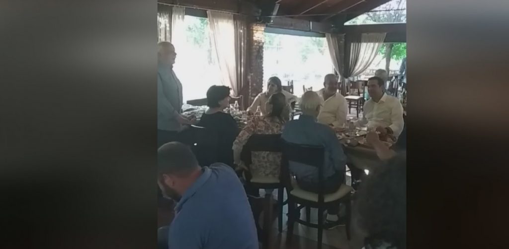 Ο πρόεδρος του ΣΥΡΙΖΑ αργότερα βρέθηκε σε ταβέρνα του χωριού Καππά, ένα από τα οκτώ χωριά του δήμου Μουζακίου στον νομό Καρδίτσας. Εκεί, ο Χρυσόστομος Μητροπάνος -κατάγεται από την Καππά, χωριό καταγωγής και του ξαδέρφου του, αείμνηστου Δημήτρη Μητροπάνου– ερμηνευτής παραδοσιακών τραγουδιών, αφιέρωσε ένα παραδοσιακό τραγούδι στον Αλέξη Τσίπρα. Επίσης, ο ίδιος δώρισε στον Αλέξη Τσίπρα πέντε cd του, με δημοτικά τραγούδια. Μαζί με τον πρόεδρο του ΣΥΡΙΖΑ παραβρέθηκαν οι Σπύρος Λάππας βουλευτής Καρδίτσας, Χρυσούλα Κατσαβρία Σιωροπούλου πρώην βουλευτής Καρδίτσας, Σάκης Παπαδόπουλος βουλευτής Τρικάλων, Παναγιώτα Δριτσέλη και Xρήστος Σιμορέλης -πρώην βουλευτές Τρικάλων- Σταύρος Αραχωβίτης πρώην υπουργός Αγροτικής Ανάπτυξης, Oλυμπία Τελιγιορίδου βουλευτής και πρώην υφυπουργός Αγροτικής Ανάπτυξης, Κωνσταντίνος Αγόρης πολιτευτής ΣΥPIZA Καρδίτσας, Γιώργος Βαϊόπουλος πρόεδρος Αγροτικού Συνεταιρισμού Αγελαδοτρόφων και Προβατοτρόφων Δυτικής Θεσσαλίας και Βιβή Ντούρβα, επικεφαλής δημοτικής παράταξης στο Μουζάκι.