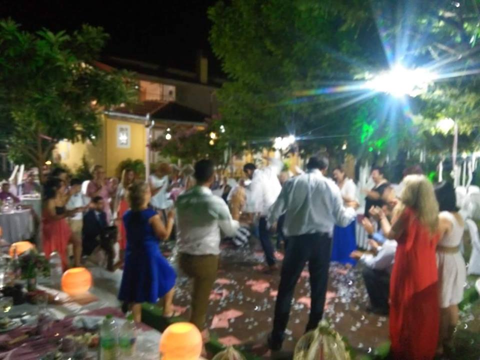 Μετά το μυστήριο ακολούθησε γλέντι μέχρι πρωίας στο ειδυλλιακό κτήμα των γονέων της νύφης, όπου την παράσταση έκλεψε ο χειροποίητος στολισμός του ζευγαριού. Η οργάνωση ήταν άψογη και οι προσκεκλημένοι διασκέδασαν μέχρι πρωίας.