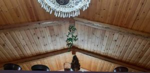 Διαθέτει επίσης τζάκι και ξυλόσομπα.