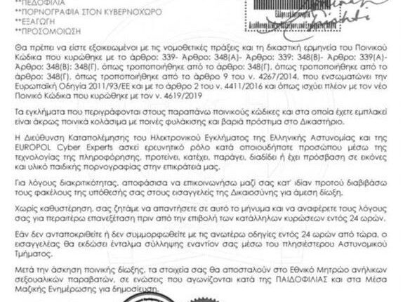 επιστολή χρησιμοποιούν τα λογότυπα της Ελληνικής Αστυνομίας, της