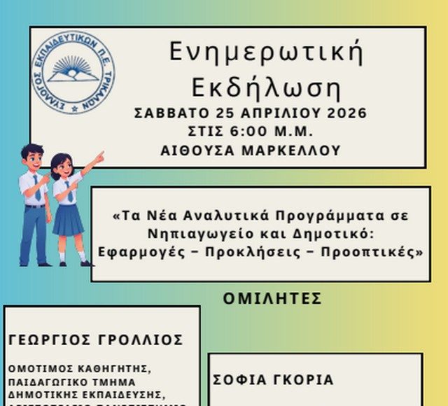Ο Σύλλογος Εκπαιδευτικών Π.Ε. Τρικάλων