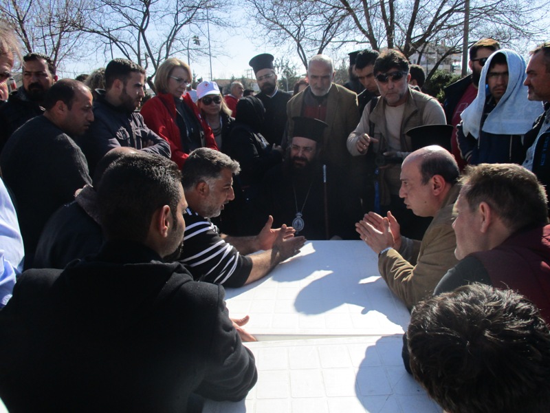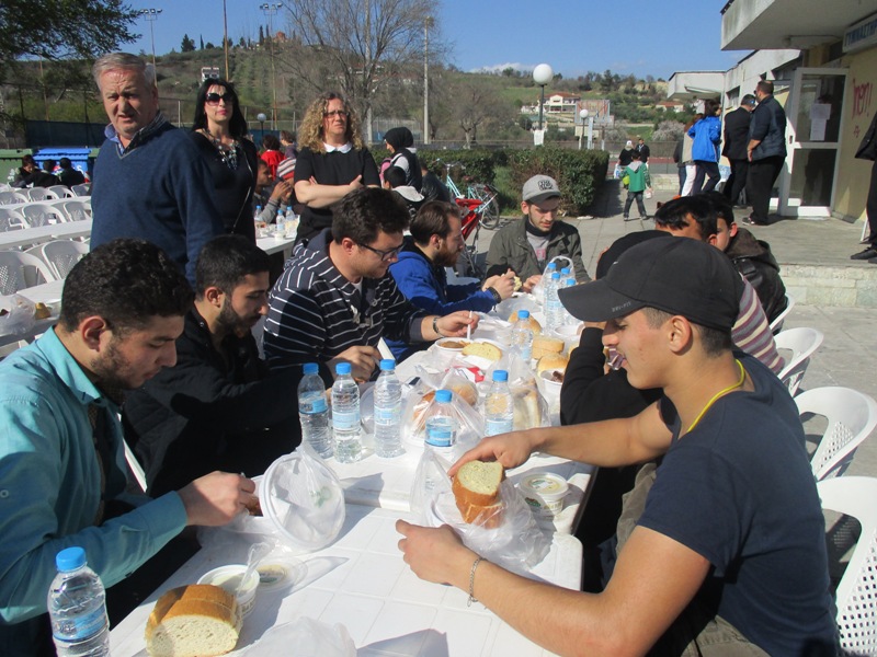 Μάλιστα ο αντιδήμαρχος Γ. Κωτούλας προκειμένου να πειστούν να καθίσουν για φαγητό κάθισε μαζί με μια παρέα νεαρών Συρίων οι οποίοι τελικά έφαγαν, ενώ ακλούθησαν και αρκετές γυναίκες και παιδιά.