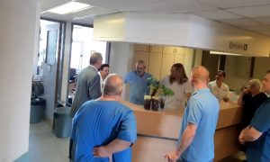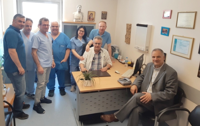 Μια πολλή θερμή υποδοχή επεφύλαξαν στον Ηλία Βλαχογιάννη, ιατροί, νοσηλευτές και εργαζόμενοι του Γενικού Νοσοκομείου Τρικάλων.