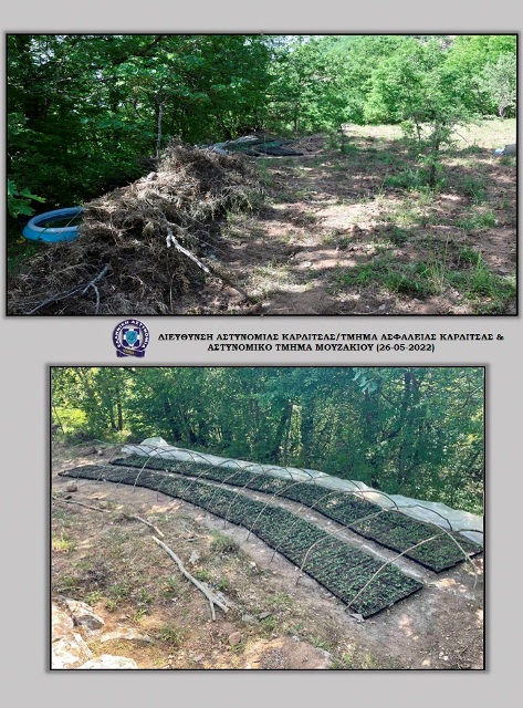Στο πλαίσιο κατάλληλης αξιοποίησης πληροφορίας, αστυνομικοί του Αστυνομικού Τμήματος Μουζακίου μετέβησαν χθες (25-05-2022) το πρωί σε δασώδη και δυσπρόσιτη ημιορεινή περιοχή του Μουζακίου Καρδίτσας, όπου εντοπίστηκε ειδικά διαμορφωμένος χώρος, πρόσφορος για καλλιέργεια φυτών κάνναβης.