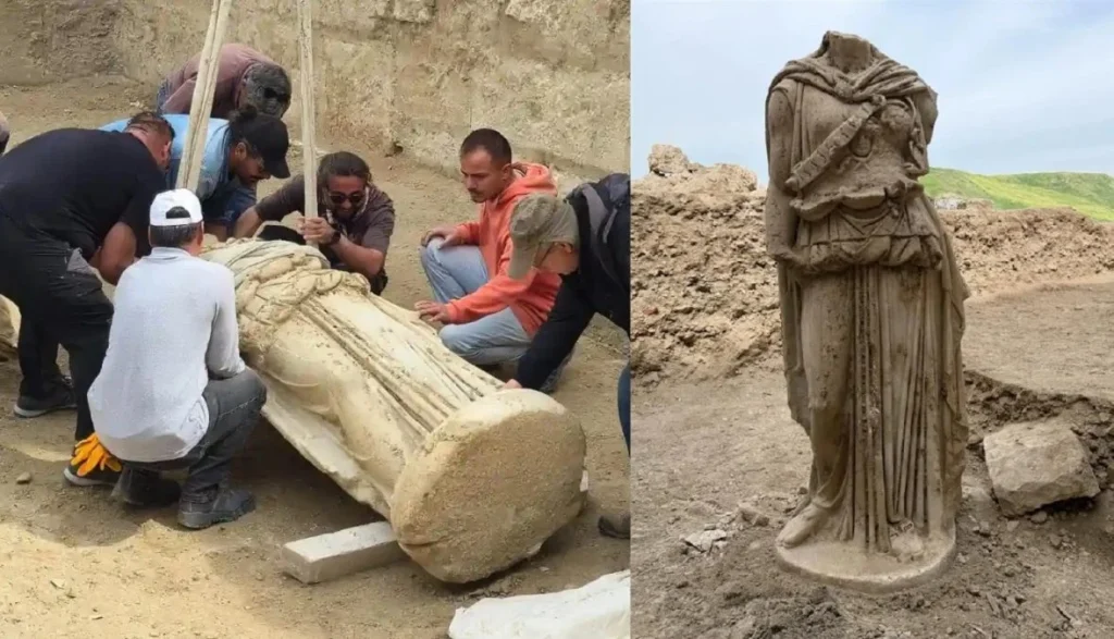 Σημαντική αρχαιολογική ανακάλυψη ανακοινώθηκε στην Τουρκία, καθώς ένα γλυπτό της θεάς Αθηνάς ύψους περίπου 2 μέτρων ήρθε στο φως στην αρχαία πόλη Λαοδικεία, στο Παμούκαλε.