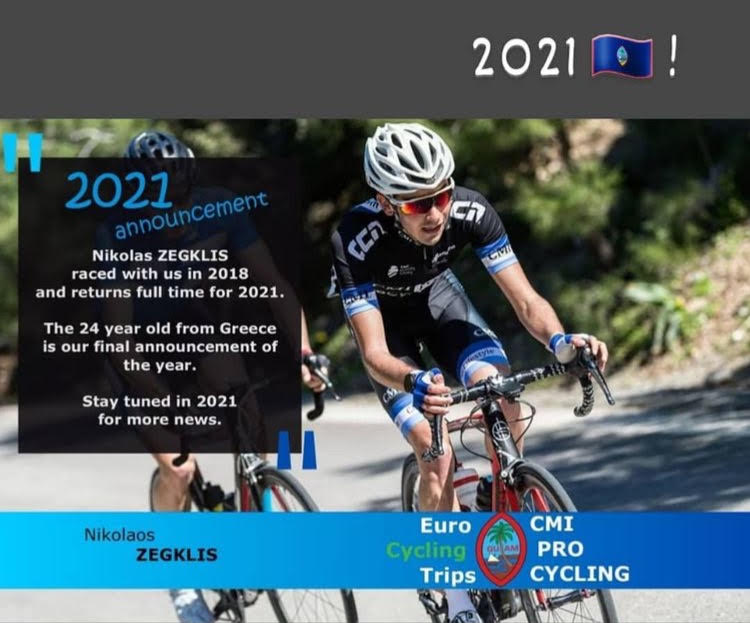 Η ομαδα που θα αγωνιστεί ο Ζεγκλης Νικος είναι η Euro Cycling Trips – CMI Pro Cycling και είναι δηλωμενη στην παγκοσμια ομοσπονδια UCI, με το ρόστερ να αποτελείται από 14 αθλητές με εθνικότητες από Γαλλία , Ολλανδία, Γκουάμ , Νέα Ζηλανδία και Αγγλία