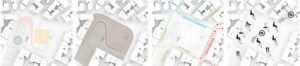 Στο σχεδιασμό κυριαρχεί η ανάπτυξη καθαρών γεωμετρικών σχημάτων και παραλλαγές αυτών. Αυτές οι σαφείς γεωμετρικά περιοχές οριοθετούν στοιχεία νερού, καθιστικά, ανοιχτούς χώρους και χώρους πρασίνου, εκδηλώσεων κ.α.. Μια καμπύλη ζώνη αποτελεί το απαραίτητο συνδετικό στοιχείο, αφού φέρει κινήσεις και στάσεις και εξασφαλίζει την προσβασιμότητα. Βρίσκεται έτσι στην καρδιά της σύνθεσης και οργανώνει τα επί μέρους στοιχεία.