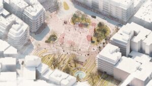 Κύριο στοιχείο της πρότασης είναι η δημιουργία μιας πράσινης-βιοκλιματικής ζώνης. Αυτή ξεκινά από την προτεινόμενη αναδιαμόρφωση της Φωκίωνος Νέγρη και διαχέεται στην πλατεία Κανάρη. Ένα «δάσος από ροζ μανόλιες» και άλλα φυλλοβόλα είδη δέντρων επιδιώκει να αναζωογονήσει την ευρύτερη περιοχή ενισχύοντας τις πράσινες περιοχές και τις δενδροφυτεύσεις του κοινόχρηστου χώρου.