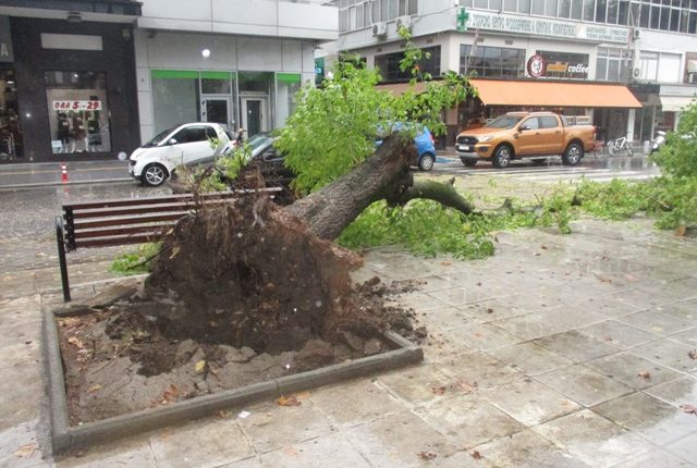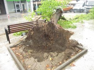 Ενα δέντρο στην κεντρική πλατεία των Τρικάλων, από την πλευρά που βρίσκεται το κιόσκι για την τουριστική ενημέρωση των επισκεπτών, ξεριζ’ωθηκε πριν από μισή ώρα περίπου, αλλά για καλή μας τύχη την ώρα που έπεσε δεν περνούσε κανένας περαστικός.