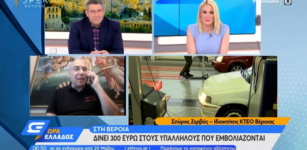 Επιχειρηματίας στη Βέροια βρήκε τρόπο να πείσει τους εργαζόμενούς του να εμβολιαστούν κατά του κορονοϊού έτσι ώστε να δημιουργηθεί μια «ασπίδα ανοσίας» από τον κορονοϊό στον χώρο εργασίας. Ο Σπύρος Ζερβός, ιδιοκτήτης ΚΤΕΟ στη Βέροια πριμοδοτεί με 300 ευρώ όσους υπαλλήλους του επιλέξουν να εμβολιαστούν, δίνοντάς τους έτσι εξτρά κίνητρο, πέραν της ατομικής ευθύνης που πρέπει να επιδεικνύει ο κάθε πολίτης.