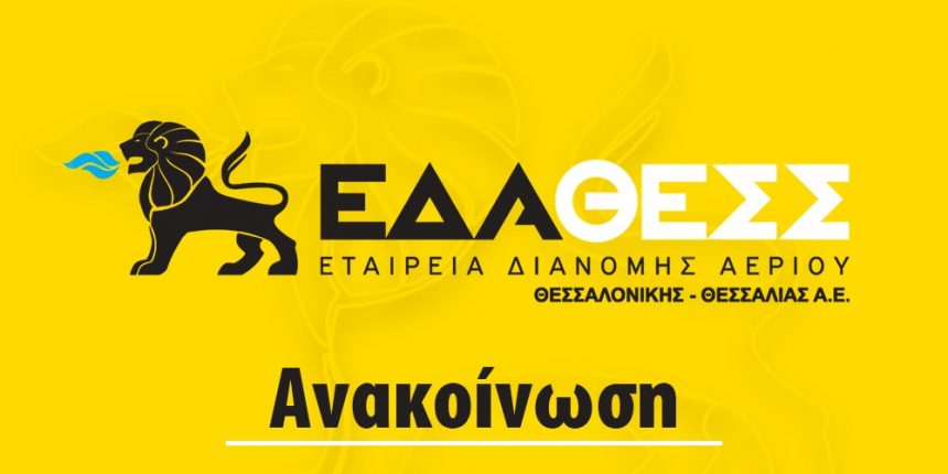 Σας ενημερώνουμε ότι το τεχνικό προσωπικό της ΕΔΑ ΘΕΣΣ, επισκέπτεται το χώρο των καταναλωτών μόνο μετά από προγραμματισμένο ραντεβού, κατόπιν επιβεβαίωσης και αποδοχής του αντισυμβαλλόμενου. Συστήνεται στους πολίτες να ζητούν απαραιτήτως την επαγγελματική ταυτότητα του εισερχομένου για την εκτέλεση εργασιών ή μετρήσεων φυσικού αερίου, η οποία αποδεικνύει την επαγγελματική ιδιότητα του τεχνικού και να επιτρέπουν την είσοδο στο χώρο τους αυστηρά και μόνο μετά από την επίδειξή της.