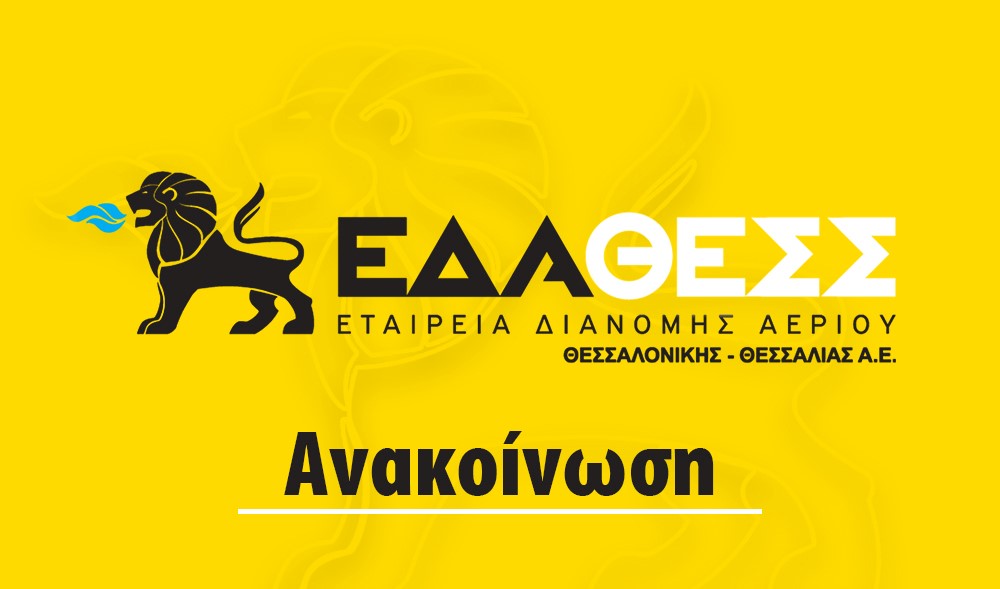 Σας ενημερώνουμε ότι το τεχνικό προσωπικό της ΕΔΑ ΘΕΣΣ, επισκέπτεται το χώρο των καταναλωτών μόνο μετά από προγραμματισμένο ραντεβού, κατόπιν επιβεβαίωσης και αποδοχής του αντισυμβαλλόμενου. Συστήνεται στους πολίτες να ζητούν απαραιτήτως την επαγγελματική ταυτότητα του εισερχομένου για την εκτέλεση εργασιών ή μετρήσεων φυσικού αερίου, η οποία αποδεικνύει την επαγγελματική ιδιότητα του τεχνικού και να επιτρέπουν την είσοδο στο χώρο τους αυστηρά και μόνο μετά από την επίδειξή της.