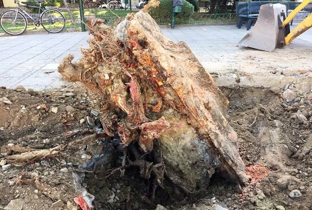 Η απόφαση επίσης όριζε ότι θα πρέπει να εξεταστεί το ενδεχόμενο, ορισμένα από τα δέντρα να διασωθούν. Από τη σημερινή εξέταση διαφάνηκε ότι τα προβλήματα είναι τεράστια στο ριζικό σύστημα των δέντρων, όπως φαίνεται από τις φωτογραφίες.