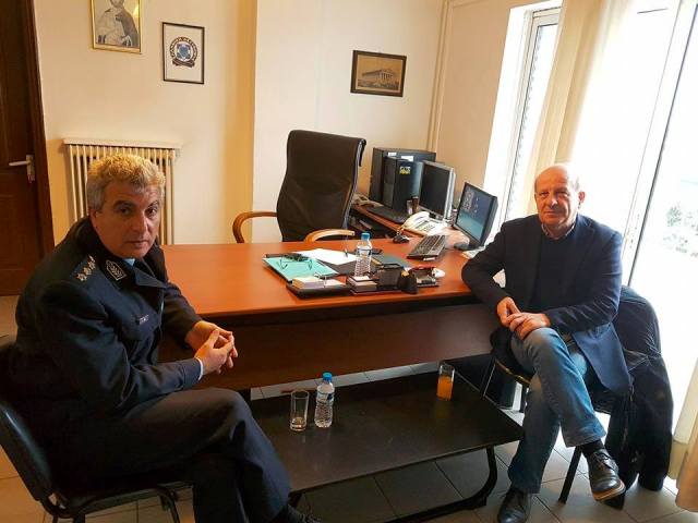 Την Αστυνομική Διεύθυνση Τρικάλων επισκέφθηκε ο βουλευτής Σιμορέλης Χρήστος,όπου είχε συνάντηση με τον νέο Αστυνομικό Διευθυντή κ. Σπηλιόπουλο Γεώργιο,αλλά και υπηρεσιακούς παράγοντες.Ευχήθηκε στον νέο Αστυνομικό Διευθυντή για την ανάληψη των καθηκόντων του και συζήτησαν θέματα που αφορούν την λειτουργία και τις ανάγκες της υπηρεσίας και εξέφρασε τη στήριξη του στο προσωπικό άνδρες και γυναίκες της Υπηρεσίας,που καθημερινά δίνουν τον καλύτερό τους εαυτό για την ασφάλεια και προστασία των συμπολιτών μας.